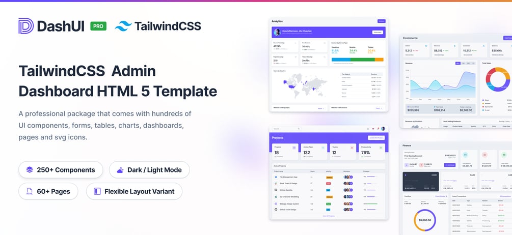 Dash UI Tailwind CSS Admin Dashboard HTML5 Template is available with focused, clean and robust design solutions. Moreover, web developers will be quite happy to know, the template is enriched with exceptional UI components, widgets, applications, and supplementary pages.