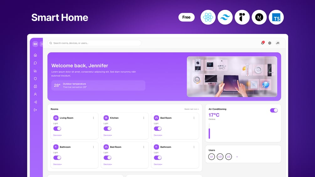 Smart Home Dashboard is a beautifully designed admin interface built with Next.js, React, and TailwindCSS β perfect for IoT, smart devices, or home automation projects. With elegant layouts, customizable color themes, and seamless user experience, it helps you create a modern and intuitive smart home control panel.